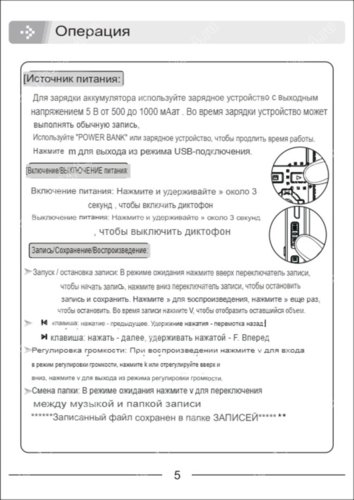 • энергосберегающие режимы - автоматическое выключение диктофона, когда находится «в режиме ожидания» не записывает аудио; отключение по таймеру; выключение подсветки дисплея при отсутствии манипуляций по настройке диктофона;