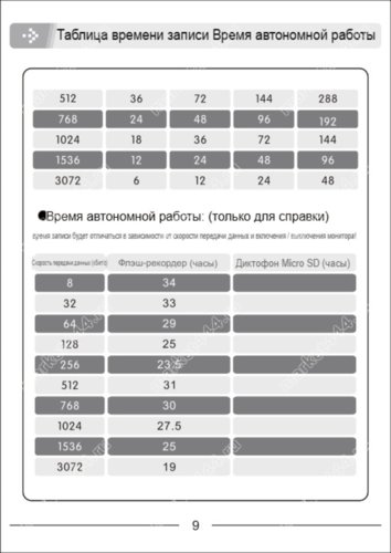 | 9. Голосовая активация (VOR) | Есть, ВКЛ-ВЫКЛ, регулировка чувствительности (порога срабатывания на запись) |